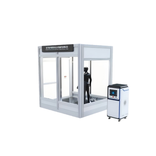 本仪器从不同角度用水枪冲刷化学防护服装,测定服装内部渗漏情况。